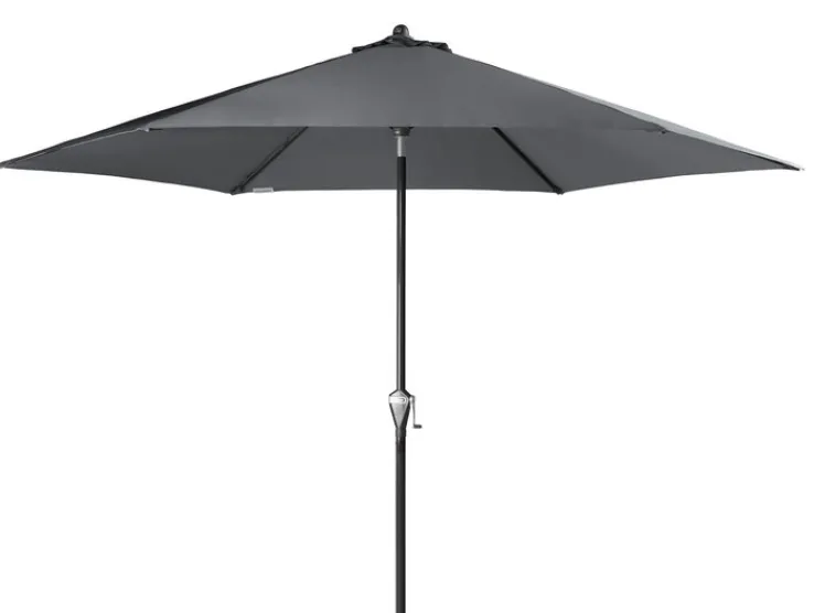 Der doppler Sonnenschirm ist rund und hat vollständig aufgespannt einen Durchmesser von 320 cm. Das Gestell aus Metall ist schwarz und der Polyester-Schirm hat die Farbe Anthrazit. Weitere Größen und Farben sind erhältlich.