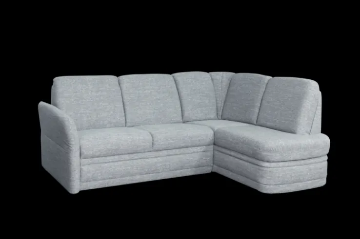 Das Ecksofa besteht aus einem 2-Sitzer Sofa mit Armteil auf der linken Seite sowie einer Recamiere. Beide Elemente verdanken ihren hohen Sitzkomfort einer bequemen Federkernpolsterung. Darüber hinaus ist jedes Element mit einer komfortablen Kopfstütze ausgestattet. Neben dem hohen Komfort überzeugt das Sofa mit einem ansprechenden Design. Bezogen mit elegantem Textilstoff wird das Ecksofa sehr modern, ist dank seiner klassischen Form jedoch für moderne und klassische Wohnzimmer gleichermaßen geeignet. Die Rückseite ist mit Nessel bezogen, weshalb das Ecksofa ideal für die Platzierung an Wänden geeignet ist.