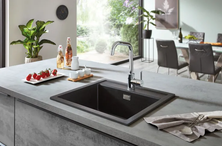 Das Spülbecken zeichnet sich durch seine klare, geometrische Form aus, die sich nahtlos in verschiedene Küchendesigns einfügt. Die glatte Oberfläche des Granits sorgt für eine einfache Reinigung und Pflege, während das Gewicht von 12 kg Stabilität und Beständigkeit gewährleistet. Die Hauptfarbe Schwarz verleiht dem Becken eine zeitlose Eleganz, die sich harmonisch in jede Umgebung einfügt.
