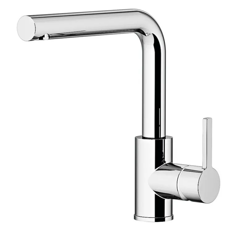 Die abgebildete Armatur besticht durch ihr modernes und minimalistisches Design, das sich nahtlos in jede Küche einfügt. Die Oberfläche ist in einem eleganten Chromfarbton gehalten, der nicht nur ästhetisch ansprechend ist, sondern auch leicht zu reinigen. Die klaren Linien und die zylindrische Form verleihen der Armatur eine zeitlose Eleganz, die sowohl in modernen als auch in klassischen Küchenumgebungen hervorragend zur Geltung kommt.