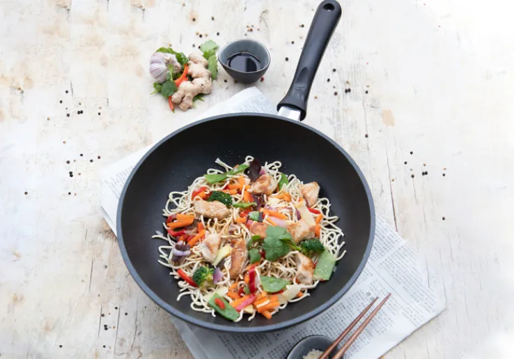 Mit der ELO Wokpfanne ALUCAST gelingen die asiatischen Trendgerichte einfach und perfekt. Sie ist schlicht schwarz und besteht aus hochwertigem Aluminiumguss. Geeignet ist sie für alle Herdarten, auch Induktion. Sie zeichnet sich durch ihre kratzfeste Qualität und pflegeleichten Eigenschaften aus. So kann sie in der Spülmaschine gereinigt werden und zeigt sich besonders energiesparend.