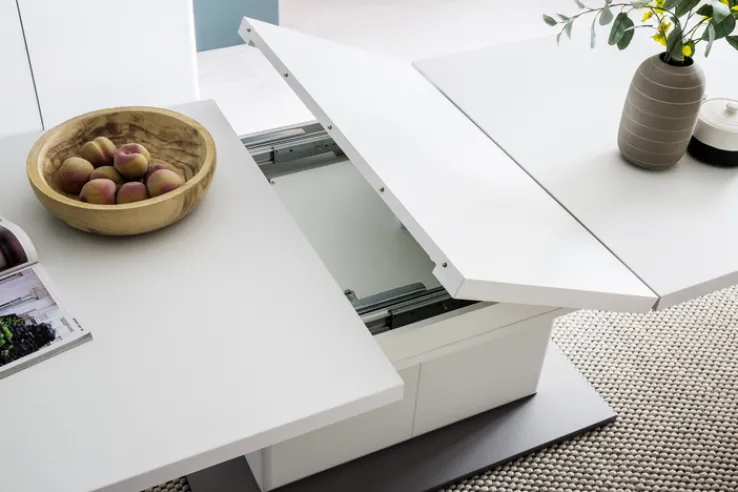 Der Esstisch AMORA hat eine Größe von 100 x 180-280 cm und versprüht mit seinem strahlend weißen Design ein topmodernes Flair.