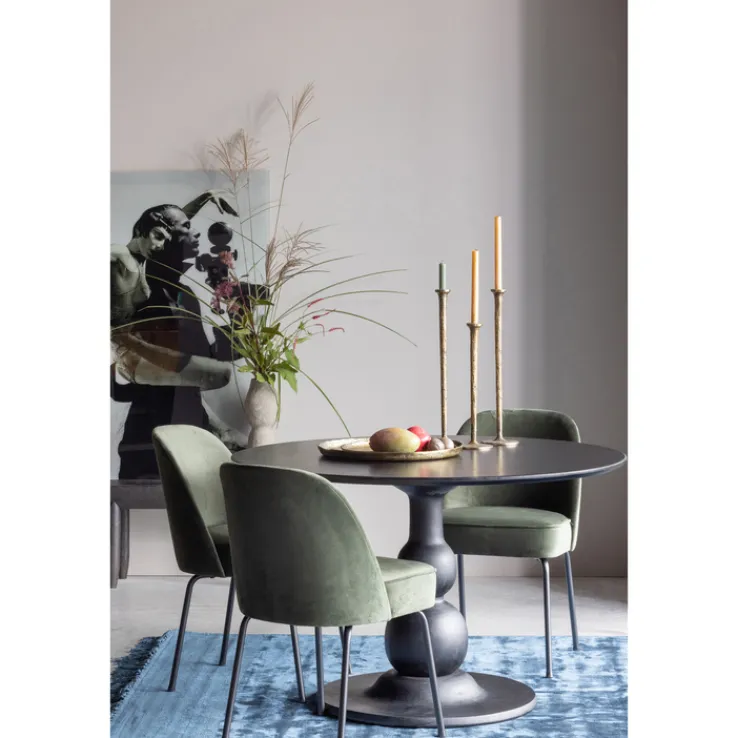 Der Esstisch BLANCO begeistert mit seinem eleganten Säulengestell mit einer runden Bodenplatte. Das Gestell ist aus massivem Mangoholz gearbeitet und mit einer matten Oberfläche schwarz lackiert. Es trägt die runde Tischplatte, die passend aus dem gleichen Holz mit ebenfalls matter Lackierung in schwarzer Farbe besteht.