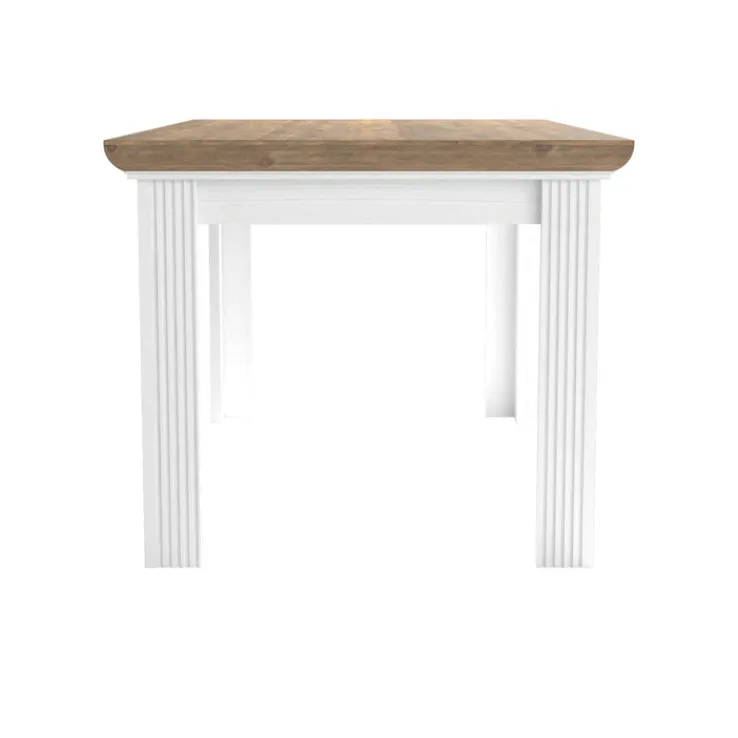Der Tisch besticht durch seine harmonische Farbkombination aus hellem Pinien- und Artisan Eiche-Dekor. Die Tischplatte in Braun verleiht dem Möbelstück eine warme Ausstrahlung, während das weiße Gestell für einen frischen Kontrast sorgt. Gefertigt aus Holznachbildung und mit einer folierten Oberfläche versehen, ist der Tisch pflegeleicht und langlebig. Dieses Möbelstück ist ideal für Familien und alle, die Wert auf ein stilvolles und praktisches Esszimmer legen.