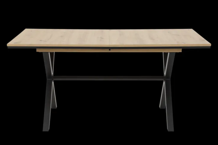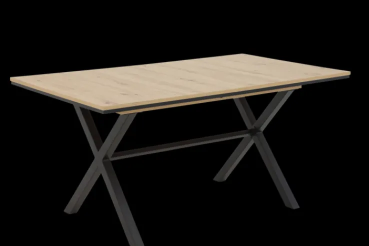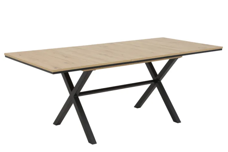 Der Esstisch ist ausziehbar (Synchronauszug) und wurde mit einer verstaubaren Einlegeplatte ausgestattet. Die farblich abgesetzte Aufdopplung der Tischplatte schenkt KARINA einen aparten Kontrast. Das X-Gestell aus pulverbeschichtetem schwarzem Metall harmoniert damit absolut perfekt. Der Esstisch hat eine komfortable Höhe von 76 cm und ist rechteckig. Er ist die ideale Lösung für alle, die auf unerwarteten Besuch optimal vorbereitet sein wollen und höchsten Wert auf eine anspruchsvolle und solide Qualität legen.