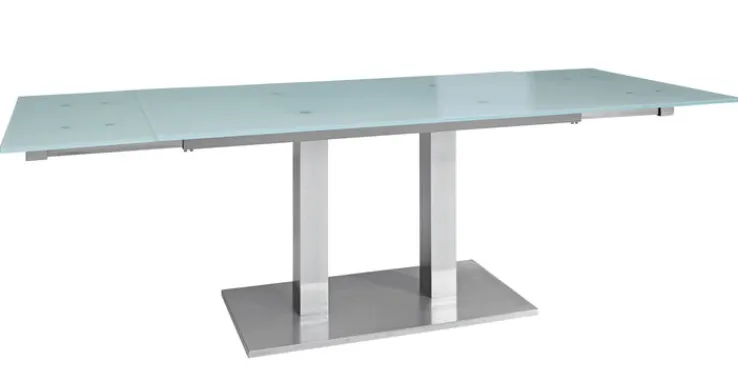 Das Säulengestell aus Edelstahl in Silberfarbe sorgt für Stabilität und unterstreicht das zeitgemäße Design des Tisches. Die rechteckige Form des Tisches passt sich optimal an verschiedene Raumkonzepte an und bietet vielseitige Einsatzmöglichkeiten. Dieser Esstisch ist nicht nur funktional, sondern auch ein stilvolles Möbelstück, das in jedem Esszimmer zum Blickfang wird.