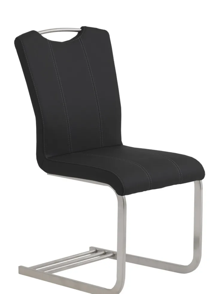 Der Schwingstuhl aus der Serie AMATI ST M5 MF vereint modernes Design mit funktionaler Eleganz. Die Hauptfarbe des Stuhls ist Schwarz, ergänzt durch silberfarbene Akzente, die dem Edelstahlgestell entstammen. Der Bezug aus Kunstleder verleiht dem Stuhl eine edle Optik und ist zugleich pflegeleicht. Die klaren Linien und die ergonomische Form sorgen für hohen Sitzkomfort, ideal für lange Abende am Esstisch.
