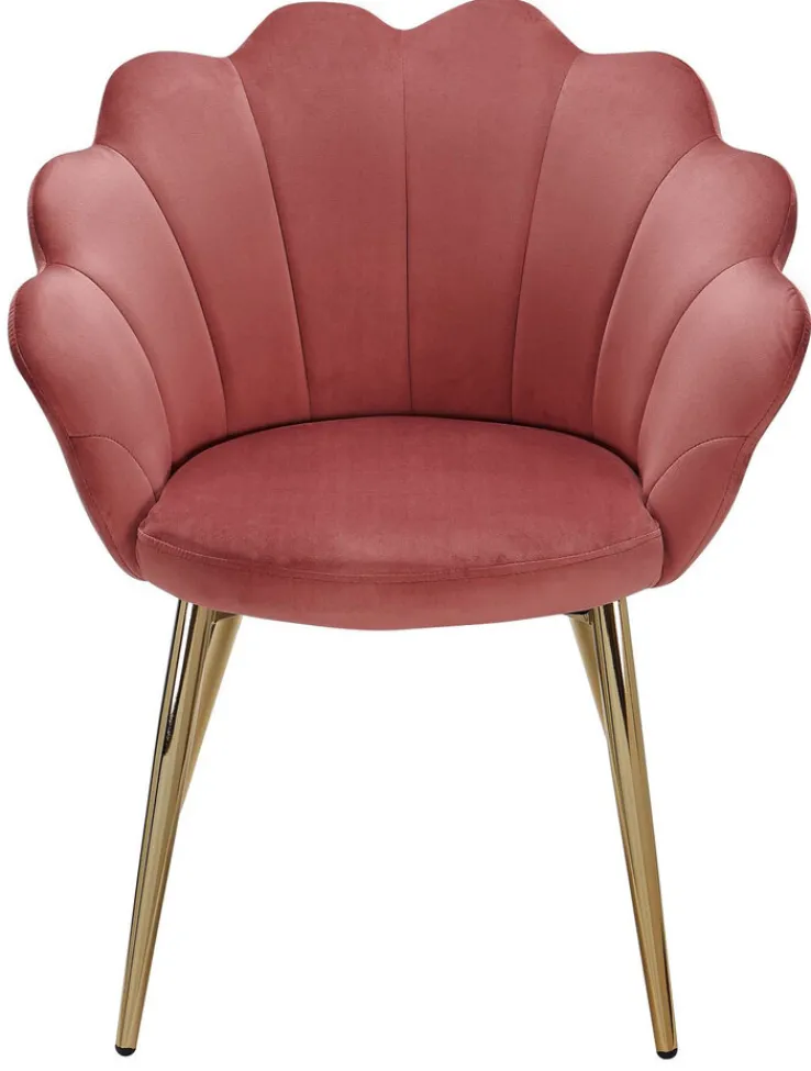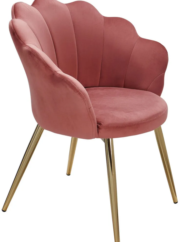 Der Esszimmerstuhl erinnert mit seinen geschwungenen Formen an eine Muschel oder einen zarten Blütenkelch. Da möchte man doch am liebsten sofort Platz nehmen! Die breite Rückenlehne geht direkt in die beiden Armlehnen über und schafft so ein Gefühl von Geborgenheit und eine gemütliche Atmosphäre.