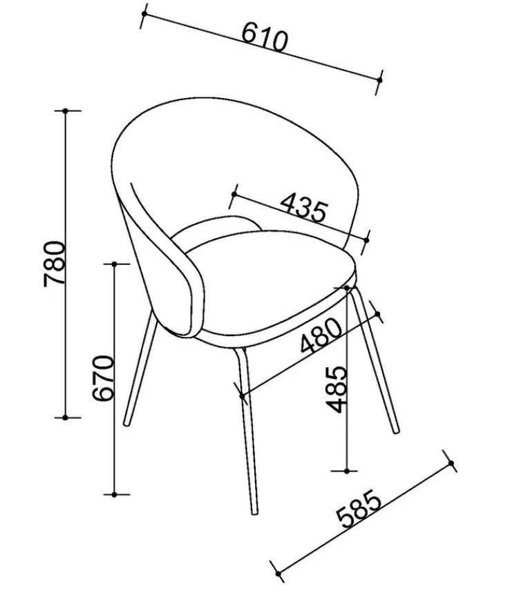 Der moderne Esszimmerstuhl VINCENT in Orange mit dem Vierfußgestell aus schwarzem Metall hat eine Breite von 61 Zentimetern, Höhe von 77,5 Zentimetern und Tiefe von 58 Zentimetern. Die bequeme Sitzfläche ist 61 Zentimeter breit, 58 Zentimeter tief und besitzt eine Sitzhöhe von 48,5 Zentimetern. Der Stuhl ist maximal mit 120 Kilogramm belastbar.