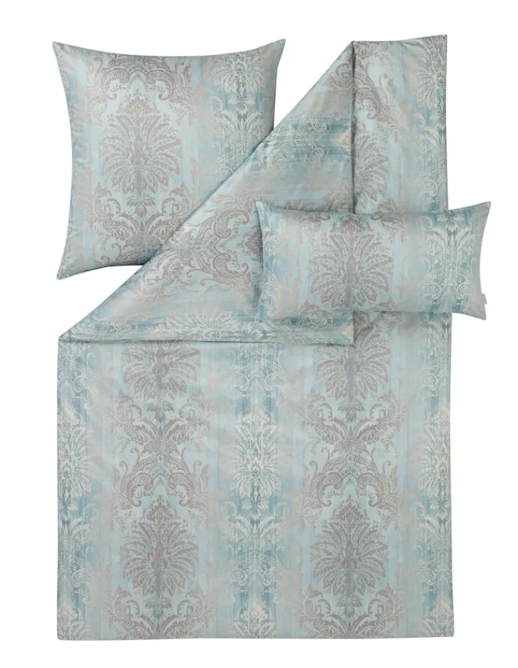 Das für die Herstellung der ESTELLA Jersey-Bettwäsche ATELIER verwendete Interlock-Jersey besteht aus 100 % reiner Baumwolle und ist nach den Prüfkriterien des Ökotex Standard 100 zertifiziert. Sowohl der 155 x 220 cm große Bettbezug als auch der 80 x 80 cm große Kissenbezug verfügen bei diesem hochwertig verarbeiteten 2er-Set über einen integrierten Reißverschluss. Für angenehme Frische im Schlafzimmer kann diese Bettwäsche jederzeit bei bis zu 60 Grad Celsius gewaschen werden. Die ESTELLA Jersey-Bettwäsche ATELIER ist in der Grundfarbe Blau gestaltet und mit einem barocken Printmuster verziert.