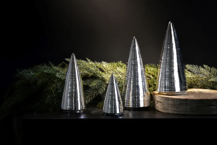 Der Dekobaum MANDY von Fink wurde aus Porzellan gefertigt, bringt eine kompakte Höhe von 12,8 cm mit und verleiht dank der silberfarbigen Oberfläche jedem Raum noch etwas mehr Glitzer und Glamour. Der Dekobaum aus Porzellan besitzt eine sehr detaillierte und leicht strukturierte Oberfläche, die für besonders spannende Lichtreflektionen sorgt.