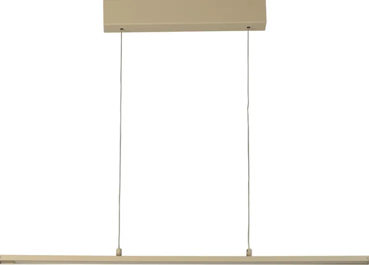Diese LED Balkenpendelleuchte aus der Serie MARLO vereint modernes Design mit funktionaler Beleuchtung. Das Gehäuse besteht aus sandfarben satiniertem Metall und Glas, was für einen dezenten und zeitgemäßen Look sorgt. Die Leuchte ist in der Hauptfarbe Beige gehalten und fügt sich durch ihre geradlinige Form und die matte Oberfläche harmonisch in verschiedene Wohnbereiche wie Esszimmer und Wohnzimmer ein.