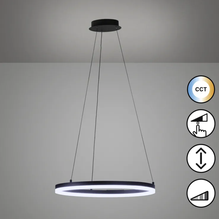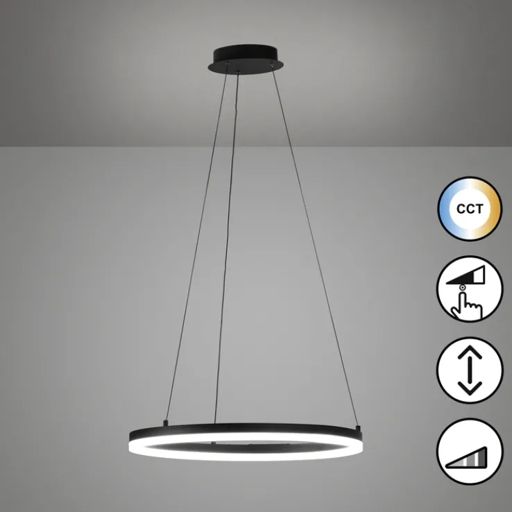 Die gefällt: Die Pendelleuchte SIRKO ist perfekt, um den Esstisch blendfrei auszuleuchten. Sie gefällt aber auch im Jugendzimmer, im Flur oder in Schlafräumen. Neben der Optik überzeugen auch die Funktionen, darauf legt das deutsche Unternehmen FISCHER & HONSEL großen Wert. Die Pendellampe ist dimmbar und verfügt über die Lichtfarbverstellung CCT. Die Lichtausbeute beträgt bis zu 4.000 Lumen bei einer Lichtfarbe von wahlweise 2.700, 3350 und 4.000 Kelvin. Bitte Montage- und Bedienhinweise am Artikel beachten.