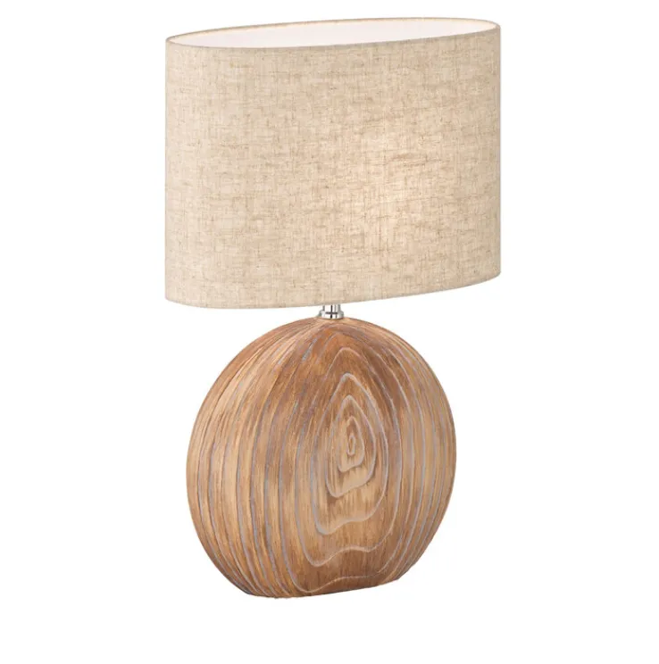 Die FISCHER & HONSEL Retrofit Tischlampe TOBSE holzfarbig mit einer Höhe von 53 cm ist in jeder Wohnung ein echter Hingucker. Der ovale Keramikfuß im Holzdesign und der sandfarbige Schirm aus natürlichem Leinen harmonieren perfekt miteinander.
