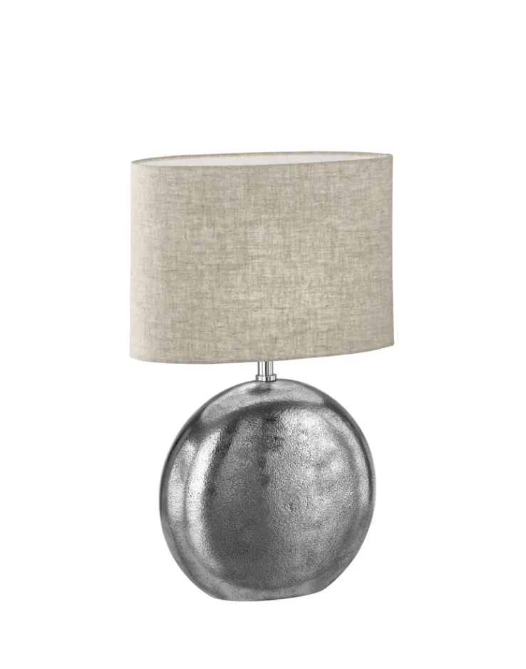 Die Tischlampe der Serie CHAMBERY von FISCHER & HONSEL präsentiert sich in einem modernen Design mit einer runden, strukturierten Basis in Alu-/Nickelfarbe. Der Lampenschirm besteht aus beigem Naturfaser-Textil und besitzt eine dezente, leicht melierte Struktur. Die Maße betragen 53 cm in der Höhe, 34 cm in der Tiefe und 17 cm in der Breite bei einem Gewicht von 2,58 kg. Die Lampe ist für den Innenbereich geeignet, darunter Wohn-, Schlaf-, Kinder-, Arbeitszimmer, Küche, Esszimmer, Badezimmer und Flur. Die Tischleuchte verfügt über einen Schnurschalter und entspricht der Schutzklasse II mit der Schutzart IP20. Sie ist für eine E27 Retrofit-Lichtquelle bis maximal 40 Watt ausgelegt, wobei das Leuchtmittel nicht enthalten ist, aber problemlos wechselbar bleibt. Die Lebensdauer der geeigneten Lichtquelle beträgt bis zu 30.000 Stunden. Das Material des Lampenschirms ist ein Naturfaser-Textil, das in Kombination mit dem silberfarbenen, metallisch glänzenden Fuß einen modernen und zugleich wohnlichen Eindruck vermittelt.