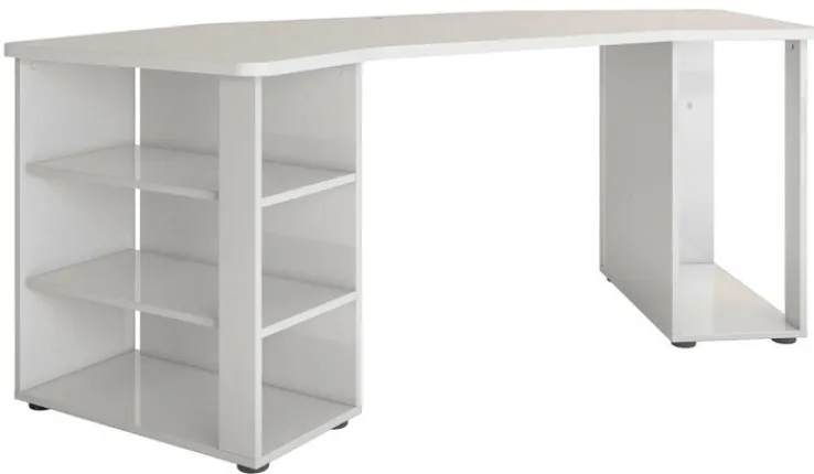 Der elegante Gaming Tisch PIPPO hat die Maße 205 x 91 cm und ist ideal für Liebhaber von Konsolen- und Computerspielen. Durch die Oberflächen in der Farbe Weiß und das zeitlose Design passt der Tisch mit offenen Fächern zu vielen verschiedenen Einrichtungsstilen. Die abgewinkelte Oberplatte bietet Platz für einen großen Monitor, Tastatur und Maus. Für den Computer ist der Tisch mit einem separaten Fach ausgestattet. Der Gaming Tisch mit Wangengestell garantiert Spielspaß und schafft eine wohnliche Atmosphäre.