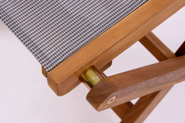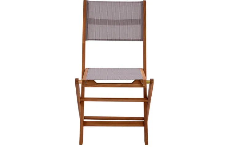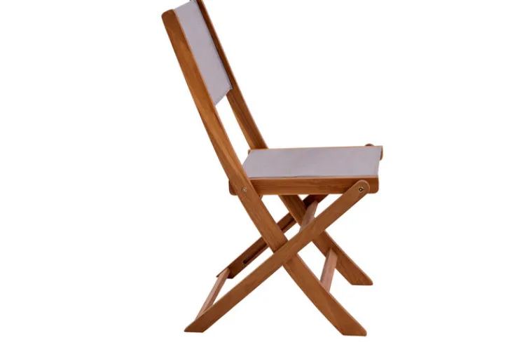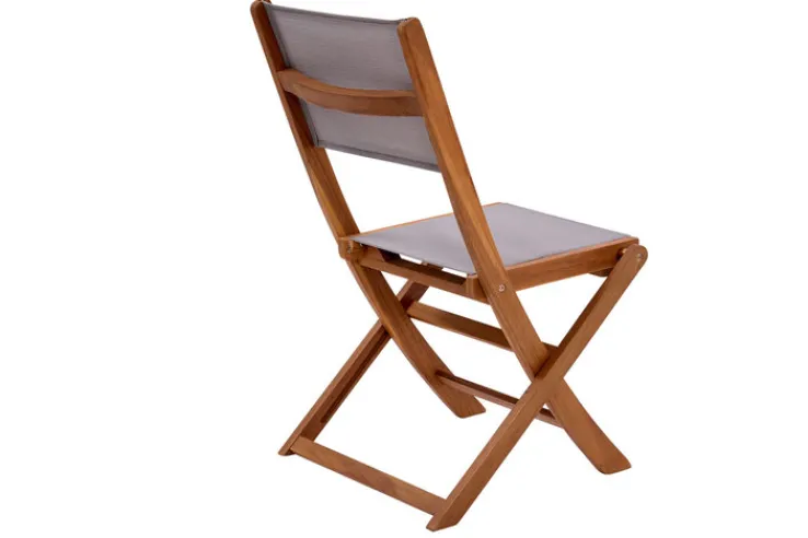 Der Garden FLAIR Gartenklappstuhl ROLAND hat eine Sitzhöhe von 45 cm. Er ist 58 cm breit und 90 cm hoch, aus naturbelassenem FSC Akazienholz mit einem grauen Textilene-Bezug.