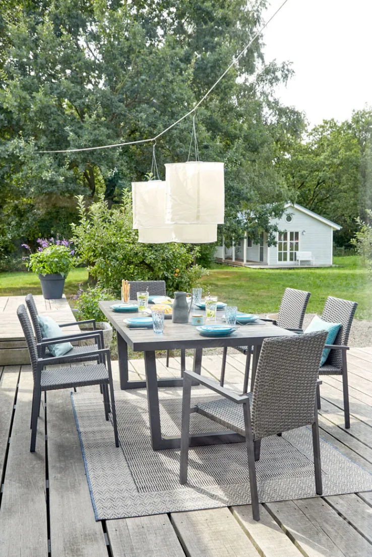 Mit dem 200 x 100 cm großen Gartentisch LENA 200 x 100 cm in den Farben Grau/ Holzoptik Grau erstrahlt der Outdoorbereich im modernen Flair und bietet zudem ausreichend Platz für gesellige Stunden mit Familie und Freunden.