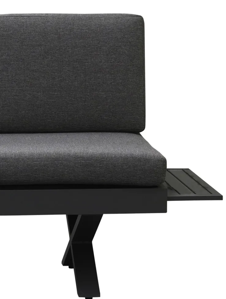 Der 3-Sitzer besteht aus jeweils drei Sitz- und Rückenpolstern in Olefin Grau. Das Besondere daran sind die Kopfteilverstellung links sowie die Ablage rechts, die ausgezogen werden kann, so dass eine Sitzerweiterung oder eine Liegeposition geschaffen werden kann. Ein weiterer Vorteil sind die abnehmbaren Rückenlehnen. Das Gestell in Aluminum Grau/Schwarz bildet einen harmonischen Kontrast zum Design des Loungesofas. Der textile Bezug in Olefin eignet sich als Outdoorgewebe, denn er ist wasserabweisend. Ein modernes und komfortables Loungesofa für den gemütlichen Abend oder die entspannte Runde!