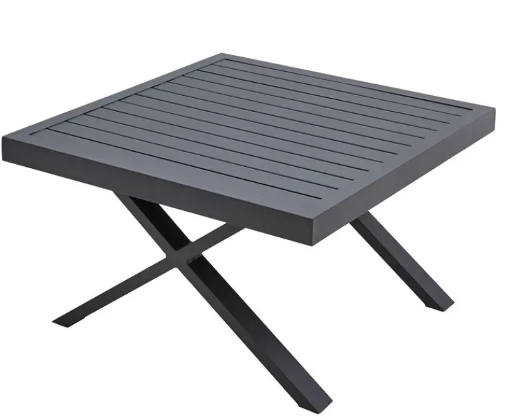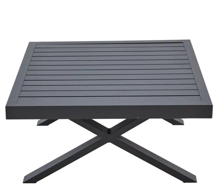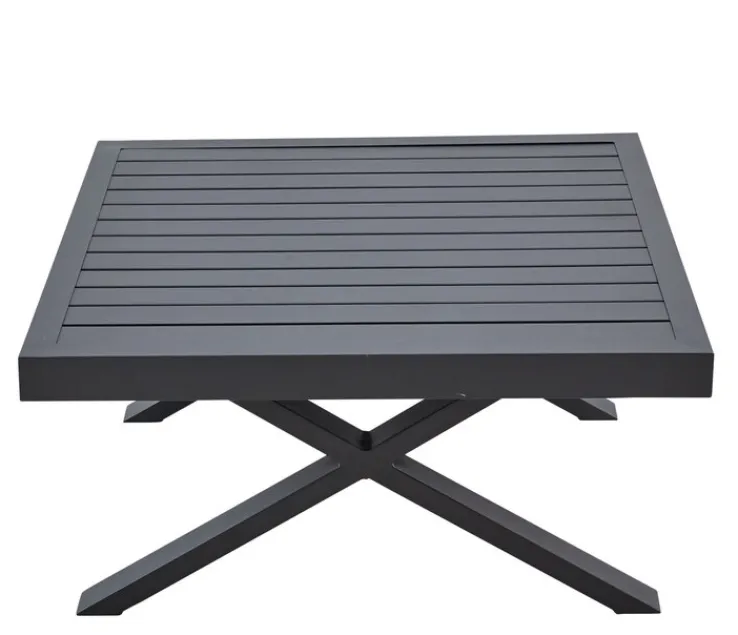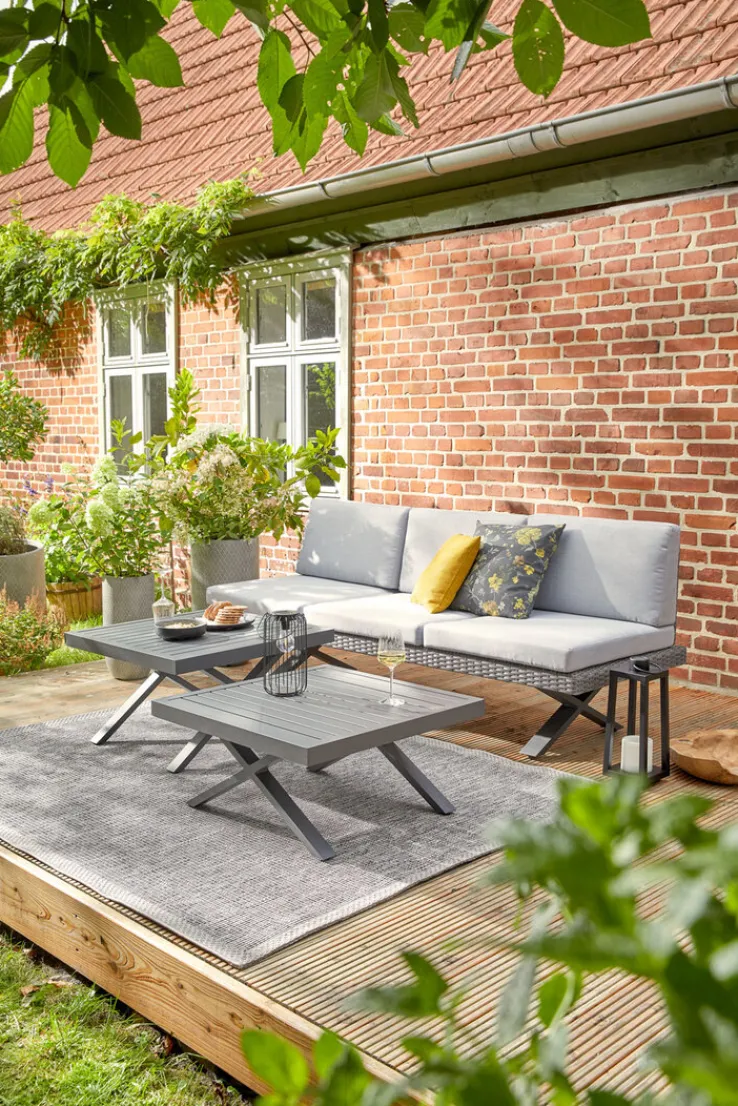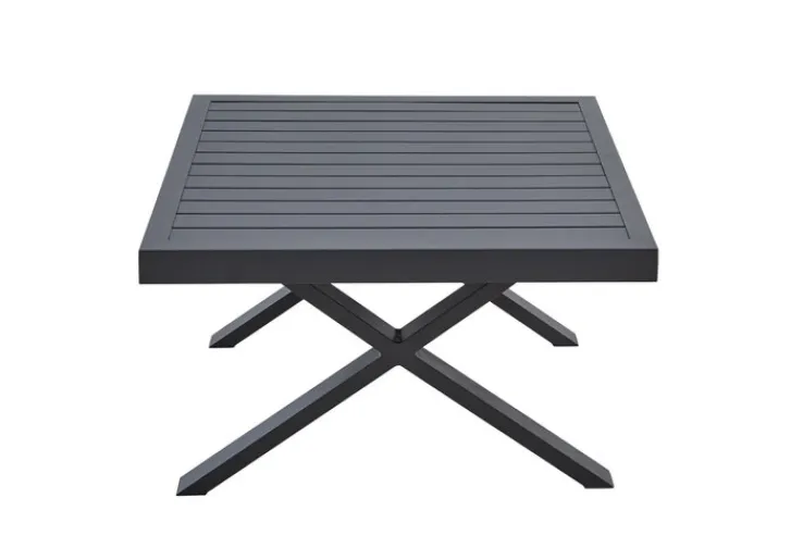 Das Garden FLAIR Loungetisch Set Outdoor RIO besteht aus einem 2-teiligen Set aus anthrazitfarbenem Aluminium. Beide Gartenbeistelltische haben eine quadratische Abstellfläche von 72 x 72 cm. Während einer der Tische eine Höhe von 34 cm hat, ist der andere Tisch 43 cm hoch. Beide Tische sind mit stabilen, sich überkreuzenden Tischbeinen ausgestattet, die ihnen einen festen Stand geben.