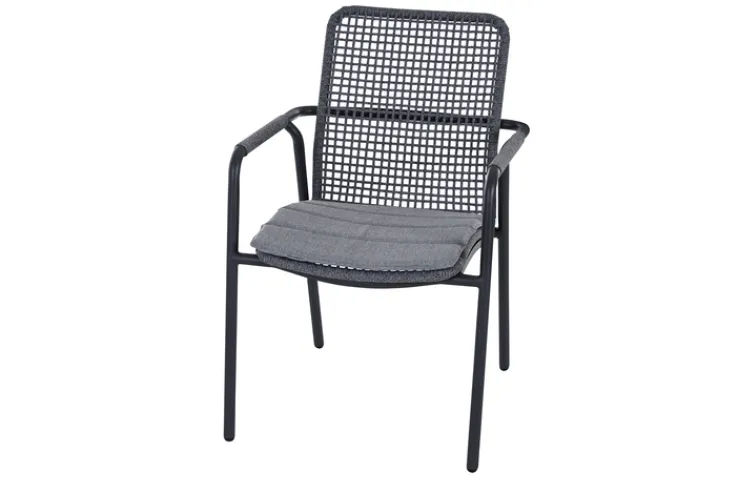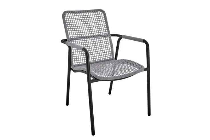 Der zweiteilige elegant-stylische REPTON ROPE Garten-Stapelstuhl von Garden FLAIR kommt in einem modernen und dennoch zeitlosen anthrazitfarbenen Metall-Gestell und einer hellgrauen Textilauflage. Das leichtgewichtige sowie stabile Modell überzeugt durch einen hohen Qualitätsstandard, komfortablen Armlehnen-Kordelung sowie ein luxuriös wirkendes Seilgeflecht.