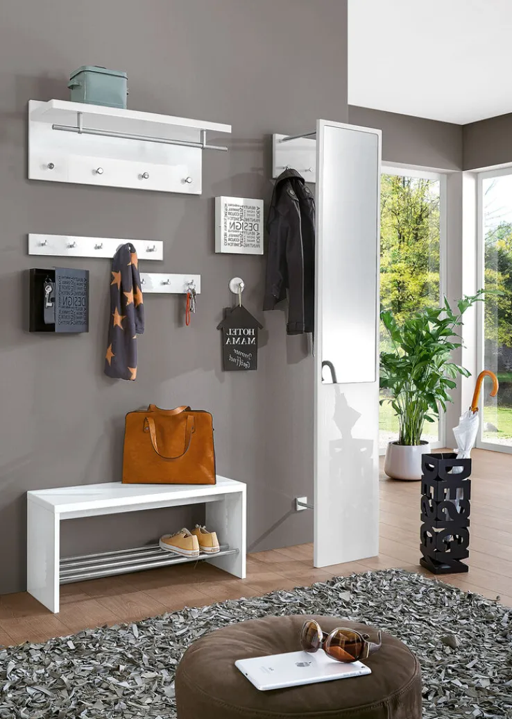 Diese Garderobenleiste findet in jedem Flur einen passenden Platz.
