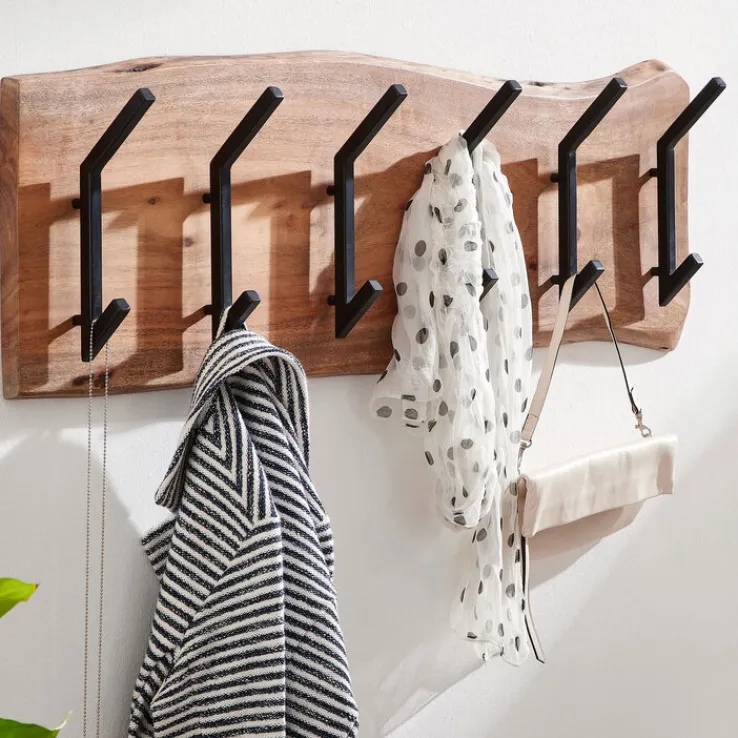 Das massive Garderobenpaneel hat die Maße von 100 × 29 cm und ist die praktische Lösung für modern und klassisch eingerichtete Flure und Dielen. Durch das schön gemaserte Akazienholz kommt das Paneel optimal zur Geltung und ist vielseitig mit verschiedenen Garderobenmöbeln kombinierbar. Sechs Doppelhaken bieten Platz für Jacken, Mäntel, Schals und Taschen. Das Garderobenpaneel trägt zu einer wohnlichen Atmosphäre bei.