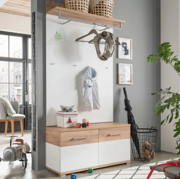 Zeitlos attraktiv und schlicht in der Farbgebung, passt das Garderobenpaneel in jeden Eingangsbereich. Es ist sehr hochwertig verarbeitet, mit ABS-Kanten versehen und mit Melaminharz beschichtet. Zudem strahlt es bezaubernde Natürlichkeit aus