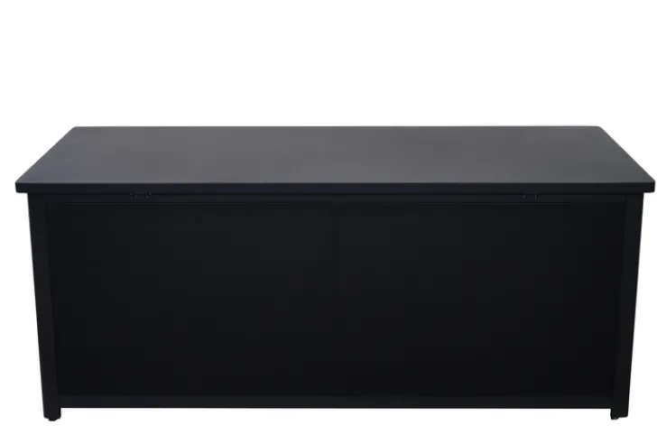 Die Auflagenbox GRADINE M bietet eine praktische und stilvolle Lösung zur Aufbewahrung im Garten. Mit einer Breite von 135 cm, einer Höhe von 59 cm und einer Tiefe von 75 cm bietet sie ausreichend Stauraum für Kissen und andere Gartenutensilien. Die Box ist in einem eleganten Schwarz gehalten, das sich nahtlos in verschiedene Gartenstile einfügt. Das Design ist rechteckig und passt perfekt zu einem modernen, industriellen oder skandinavischen Stil. Gefertigt aus robustem Metall und Kunststoff, ist die Auflagenbox sowohl langlebig als auch wetterbeständig. Die pulverbeschichtete Oberfläche aus Aluminium sorgt für zusätzlichen Schutz und eine ansprechende Optik. Die Box ist klappbar, was die Handhabung erleichtert und bei Nichtgebrauch Platz spart. Ein weiteres praktisches Merkmal ist der Stauraum, der für Ordnung im Außenbereich sorgt.