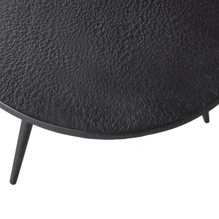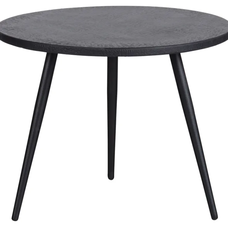Der Garten-Beistelltisch SUZE ist 2-teilig, beide Tische haben einen Durchmesser von 53 cm, ihre Höhe beträgt 36 und 45 cm. Das Dreifußgestell ist aus schwarzem Metall, die Tischplatte aus Holz.