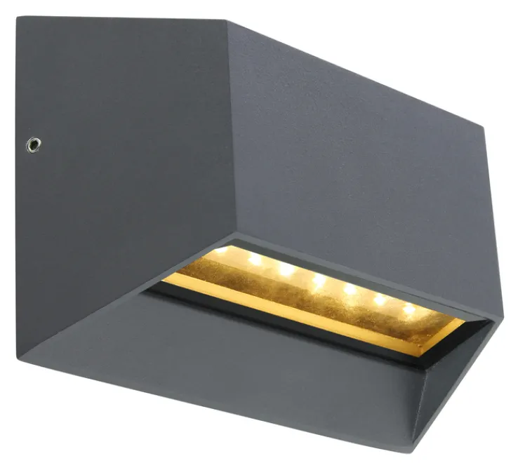 Die elegante GLOBO LED Außenwandleuchte HONNA hat eine Breite von 14,8 cm und überzeugt mit einer klaren Formensprache im modernen Still. Durch das tolle Design ist die 1-flammige Wandleuchte im Farbton anthrazit ein Blickfang für Eingangsbereiche, Auffahrten oder die Terrasse. Das Licht strahlt nach unten ab und sorgt somit für tolle Reflexionen an der Fassade und eine sichere Beleuchtung von Wegen. Die Außenwandleuchte mit energieeffizientem LED-Leuchtmittel ist die perfekte Lichtlösung für den modernen Außenbereich.
