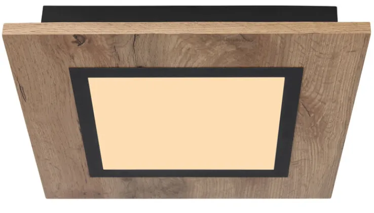 Die formschöne LED Deckenlampe LEA von GLOBO überzeugt mit einem Rahmen in Holzoptik und passt in moderne Einrichtungen. Durch das zeitlose Design ist die Leuchte mit den Maßen 30 × 30 cm vielseitig verwendbar und eignet sich für den Wohn-, Schlaf- oder Eingangsbereich. Die 1-flammige Deckenleuchte verteilt das Licht durch ihre quadratische Form gleichmäßig im Raum und sorgt für eine stimmungsvolle Atmosphäre.