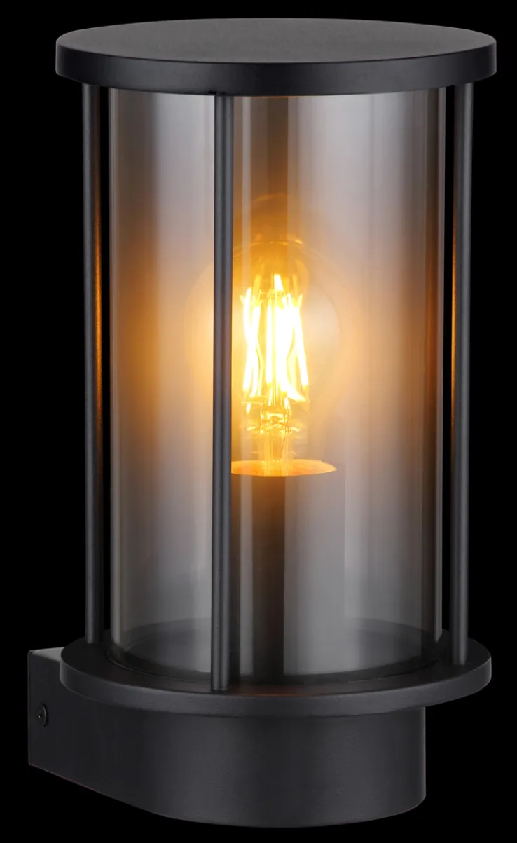 Die GLOBO Retrofit Außenwandleuchte GRACEY ist 1-flammig. Sie ist 25,2 cm hoch, 14,3 cm breit und 15,2 cm tief. Die Lampe aus schwarzem Edelstahl und rauchfarbenem Glas wiegt 1,21 kg und wurde speziell für den Außenbereich konzipiert.