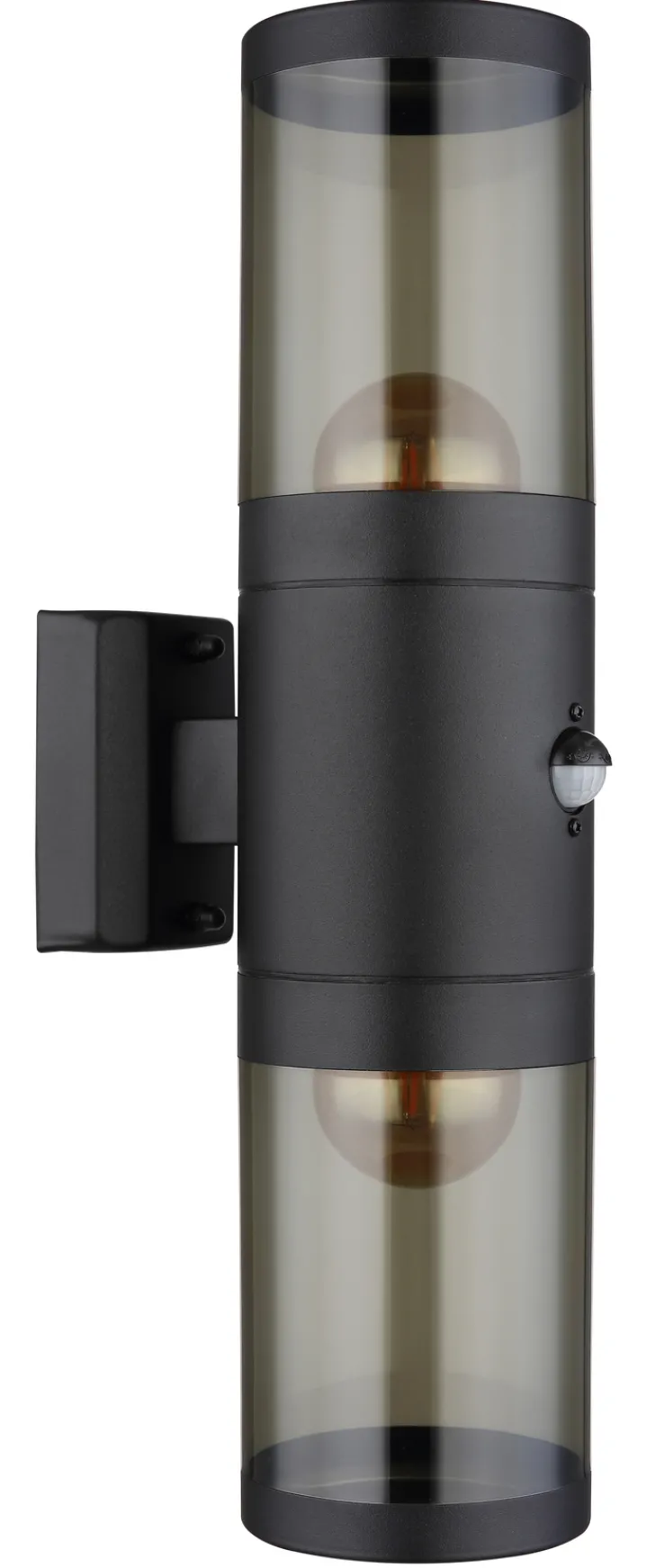 Die rauchfarbige, 2-flammige Außenwandleuchte XELOO B 2-flammig ist in den Farben Schwarz und Grau gehalten. Sie wirkt mit ihren Materialien Kunststoff für den Schirm und Metall (Edelstahl) für Korpus und Halterung schlicht und elegant zugleich. Eine dezente, moderne Beleuchtung!