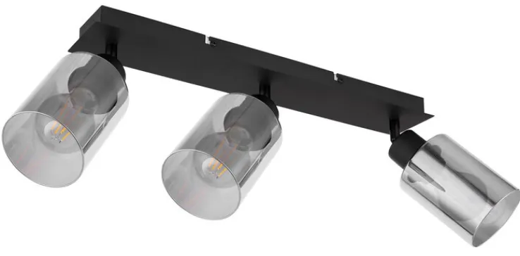 Die Retrofit Deckenlampe HADERA aus dem Hause GLOBO spendet mit ihren 3 Spots dort Licht, wo es gebraucht wird. Jeder Strahler lässt sich dafür individuell ausrichten. Die Deckenleuchte trägt zu einem schönen Wohnambiente bei. Mit ihren Lampenschirmen aus Rauchglas, die an einem schwarzen Metallgehäuse befestigt sind, wirkt sie sehr dekorativ. Sie verfügt über E27-Fassungen und kann ausgestattet werden mit 3 Leuchtmitteln eigener Wahl, die jeweils einen Energieverbrauch von maximal 15 Watt haben.