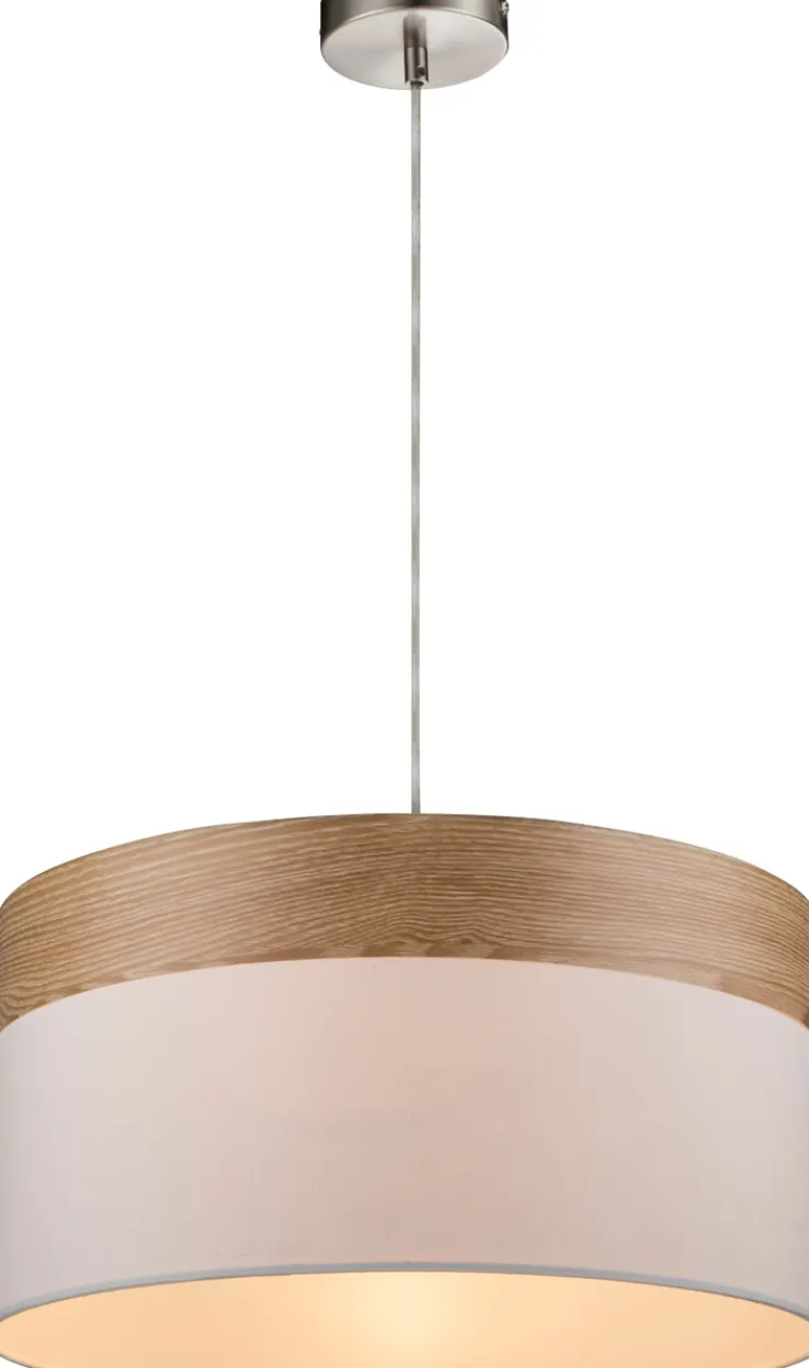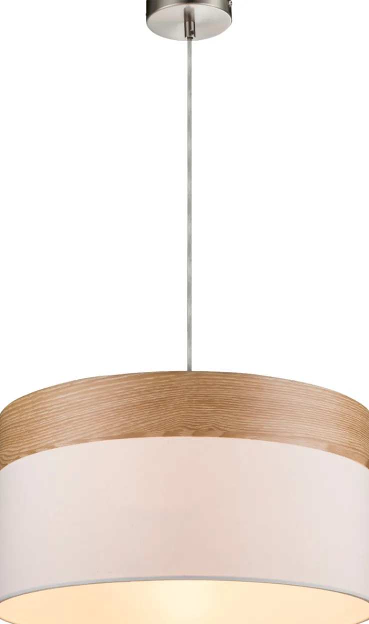 Die 1-flammige Retrofit Pendelleuchte CHIPSY von GLOBO hat einen Durchmesser von 40 cm und passt in modern und klassisch eingerichtete Wohnbereiche. Durch den beigefarbigen Lampenschirm mit Holzdekor entsteht ein wundervoller Kontrast, der zu verschiedenen Einrichtungen passt. Sie ist ideal für den Ess- oder Wohnzimmertisch. Auch für einen Küchentisch ist die hochwertige Leuchte geeignet. Die schöne Pendelleuchte verleiht dem Zuhause eine einzigartige Atmosphäre und sorgt für ein angenehmes Licht.
