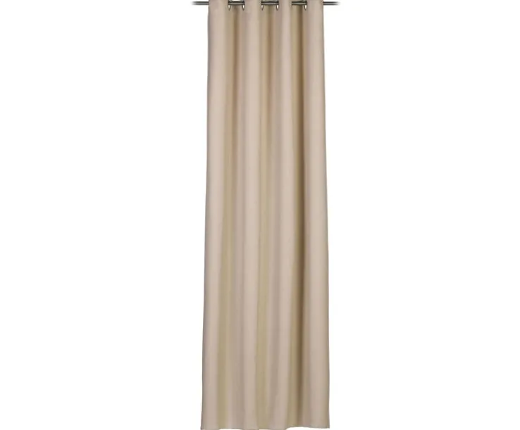 Es handelt sich bei dem Material um einen dichten Stoff, der sich zur Verdunklung der Räumlichkeiten eignet. Er ist aus reinem Polyester gearbeitet und kann bei 30 °C in der Maschine gewaschen werden. Durch die angebrachten Ösen lässt sich der Schal einfach über eine Gardinenstange schieben. Das edle Textil lässt den Raum unmittelbar freundlicher wirken.