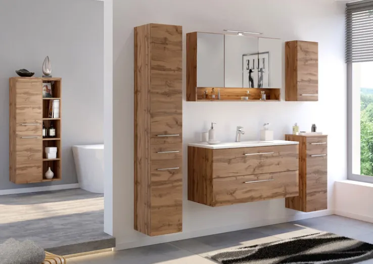 Dieser Schrank ist das optische Highlight in jedem Badezimmer, was an seinem Design sowie seinen schicken Farben liegt. Er hat eine Tiefe von 20 cm und verfügt über eine Drehtür und zwei Einlegeböden. Somit bietet er Stauraum für die wichtigsten Dinge. Da die Türen außerdem mit einer Soft-Close-Funktion versehen sind, ist ein leises Schließen gewährleistet. Bei diesem Möbel, das mit Metallgriffen zum einfachen Öffnen ausgestattet ist, ist der Türanschlag wechselbar, sodass es sowohl rechts als auch links vom Waschbecken aufgehängt werden kann.