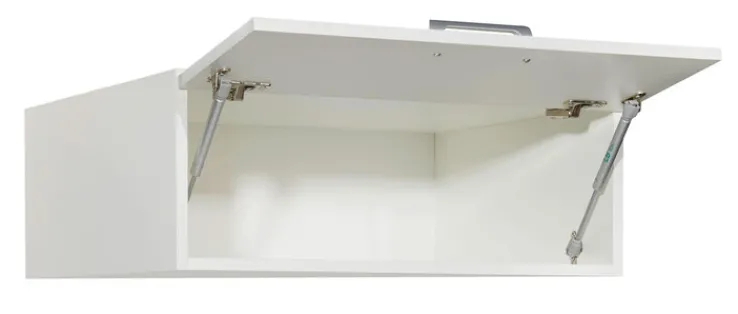 Mit seiner weißen Optik strahlt der Hängeschrank WASHTOWER hygienische Sauberkeit und Frische aus und passt daher optimal in ein freundlich eingerichtetes Badezimmer. Der pflegeleichte Schrank ist aus Holznachbildung gefertigt und mit Melaminharz beschichtet. Geöffnet wird der 67 cm breite und 65,5 cm tiefe Schrank über eine Klappe nach oben. Im Inneren lassen sich Handtücher, Kosmetika oder andere Bad-Utensilien übersichtlich unterbringen.