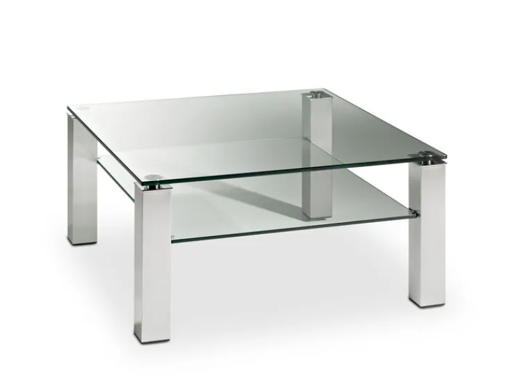 Der aus Klarglas und matt vernickeltem Metall bestehende Couchtisch in den Maßen 80 x 80 cm aus dem Hause HAUKE HENDRIKS weiß sowohl optisch als auch praktisch zu überzeugen.