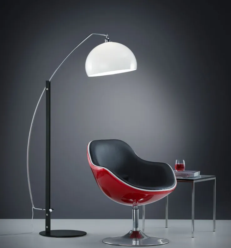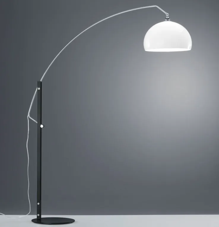 Die helestra Retrofit Bogenlampe DORO ist eine Stehleuchte in den Farben Schwarz und Weiß. Sie ist höhenverstellbar von 165 cm bis 190 cm. Die Lampe wird ohne Leuchtmittel geliefert.