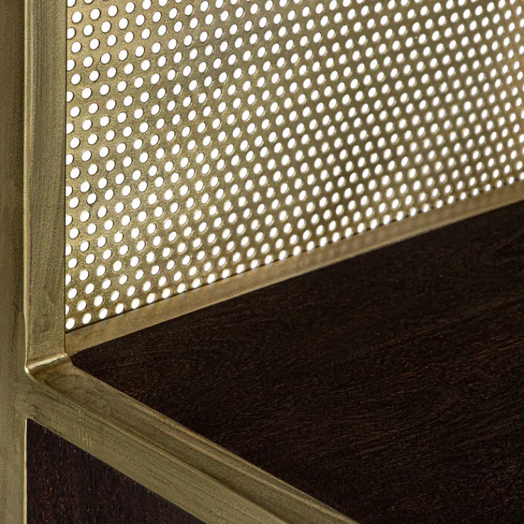 Der Hochschrank GOLDEN BATH besteht aus antikgoldfarbigem Eisen und dunkelbraun gebeiztem Mango Massivholz. Mit seiner edlen Farbkombination zieht er alle Blicke auf sich. Damit die Feuchtigkeit im Badezimmer den Oberflächen keinen Schaden zufügt, sind sie mit Öl behandelt. Zusätzlich zu seinem eleganten Look überzeugt der Hochschrank mit viel Stauraum. In einem offenen und mehreren geschlossenen Fächern bietet er ausreichend Platz für Handtücher, Pflegeprodukte und vieles mehr.