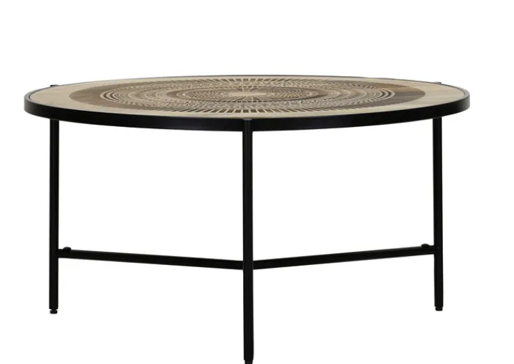 Die Tischplatte des INTERhome Couchtisch SANTA CRUZ besteht aus naturgebeiztem und lackiertem Mangoholz. Die einzigartige Lasergravur auf der Tischplatte erzählt Geschichten von Handwerkskunst und Hingabe, die jedes Stück zu einem Unikat machen. Das robuste Dreifußgestell aus pulverbeschichtetem Metall sorgt dafür, dass der Tisch auch bei intensiver Nutzung stabil bleibt.