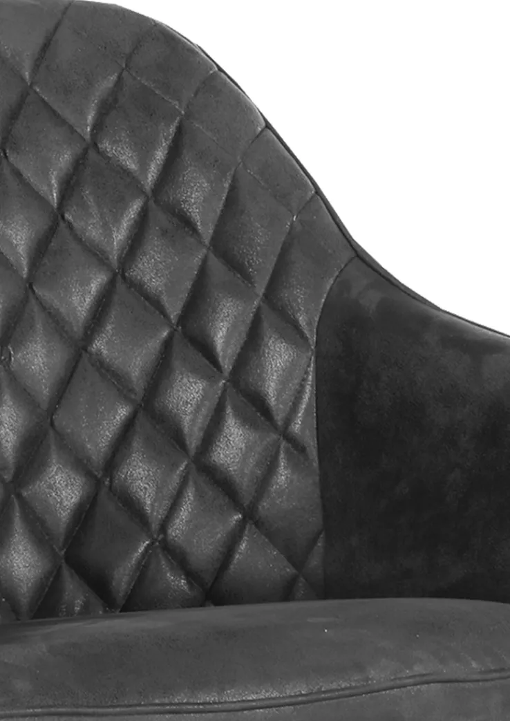 Der Stuhl besticht durch seine anthrazitfarbene Polsterung in Used-Optik, die aus 100 % Polyester besteht. Die gesteppte Textur verleiht dem Stuhl eine elegante Note. Das Vierfußgestell aus massivem, natur lackiertem Eichenholz sorgt für Stabilität und einen natürlichen Look. Dieser Stuhl ist ideal für moderne Wohnräume und fügt sich nahtlos in verschiedene Einrichtungsstile ein.