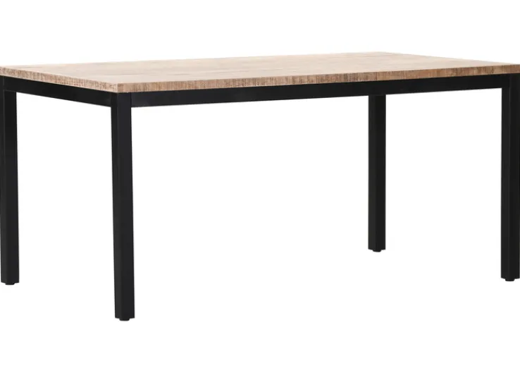 Der INTERhome Esstisch ALTEA in Mango ist 160 cm lang, 90 cm breit und 76 cm hoch. Er ist aus massivem Holz mit einer Plattenstärkle von 30 mm und schwarz lackiertem Metall.