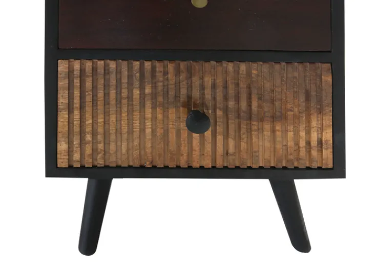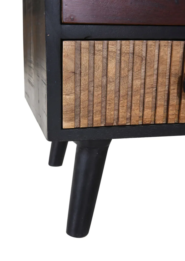 Die INTERhome Kommode ANTONIO mit den Maßen 45 x 120 cm besteht aus Mango Massivholz in Schwarz und Fronten in Multicolor. Sie besticht auf den ersten Blick mit einem extravaganten Retro-Design und bietet Platz für Alltagsgegenstände.
