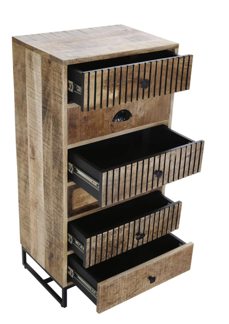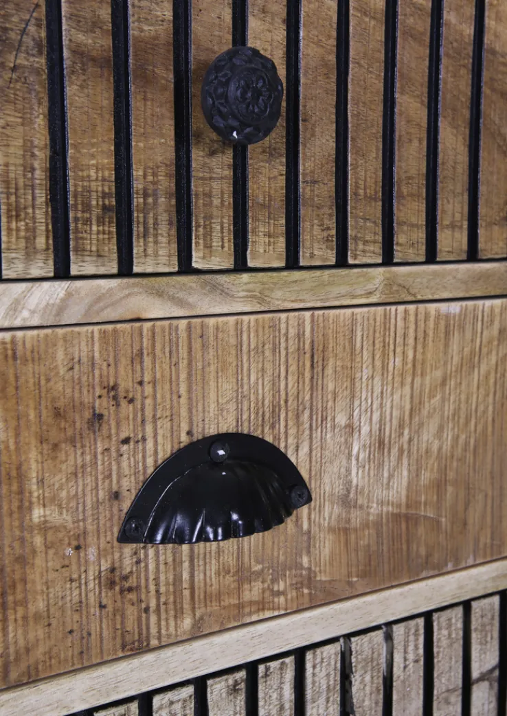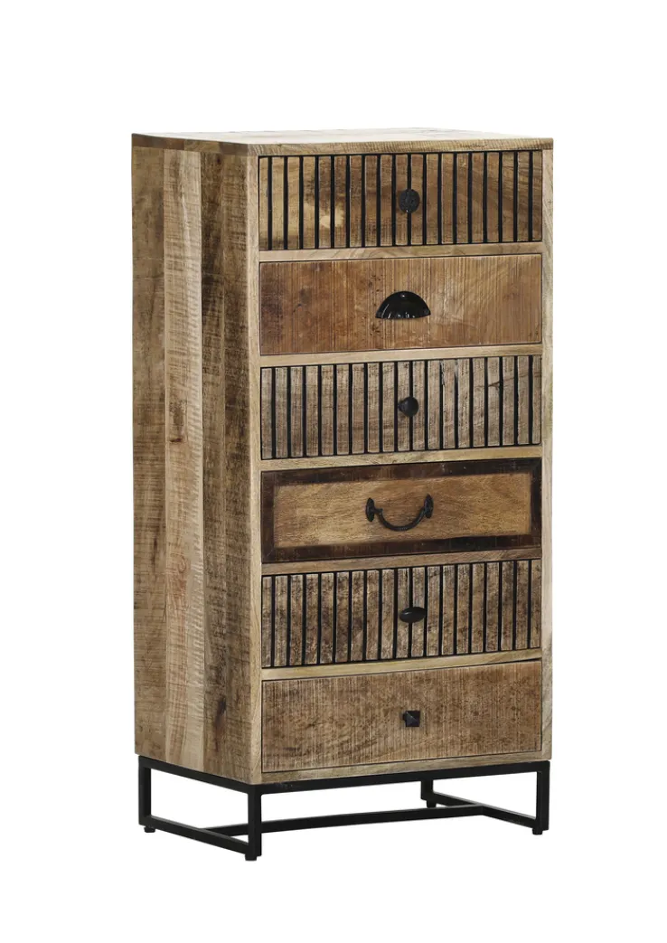 INTERhome: Der Name steht für stilvolles Wohndesign. Korpus und Schubladenfronten der schönen Kommode GENESIS sind aus massivem Mangoholz gefertigt. Das gebeizte und lackierte Naturmaterial macht mit seinen interessanten Strukturen jede Kommode zu einem Einzelstück. Durch das schwarz lackierte Gestell und die Griffe entsteht ein attraktiver Kontrast. In den sechs Schubladen lassen sich viele Dinge wohlgeordnet unterbringen. Das Schubladeninnere besteht aus mitteldichter Faserplatte, die Laufleisten aus Metall.