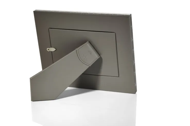 Der Rahmen eignet sich für Bilder mit den Maßen 10 x 15 cm. Das Material besteht aus Textil mit Kunstlederstruktur, was für eine angenehme Haptik und moderne Wirkung sorgt. Die Verarbeitung und das Design unterstützen eine stilvolle Präsentation von Fotos im Querformat.