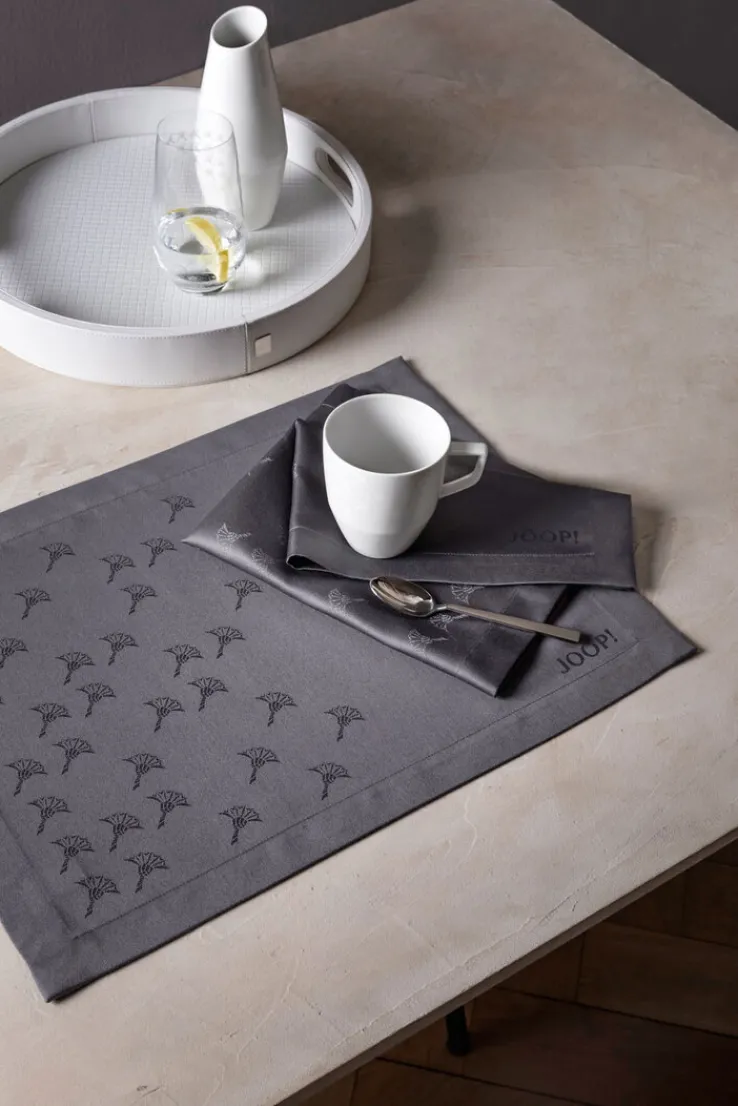 Aus der Reihe FADED CORNFLOWER vom Luxuslabel JOOP! ist das Servietten-Set in Graphitgrau, welches als 2er Set angeboten wird. Besonders zu exklusiven Anlässen wie einem offiziellen Empfang, dem Schulanfang, aber auch einem runden Geburtstag oder einer Hochzeit soll den Gästen etwas Besonderes geboten werden. Um den passenden Rahmen zu setzen, lässt sich die gedeckte Tafel mit Textil-Servietten veredeln. Das Set von JOOP! ist eine hervorragende Möglichkeit, dies zu realisieren.