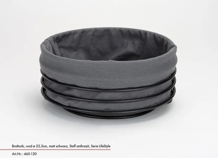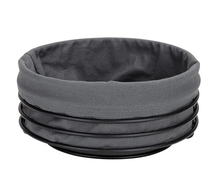 Der runde Brotkorb ist aus stabilem Metall gefertigt. Die einzelnen Teile sind geschweißt und die Oberflächen sind pulverbeschichtet. Durch die Pulverbeschichtung ist der Korb äußerst robust. Der Stoffeinsatz besteht aus einem strapazierfähigen Textil. Die Seiten und die Kanten sind aufwendig gesäumt und vernäht.